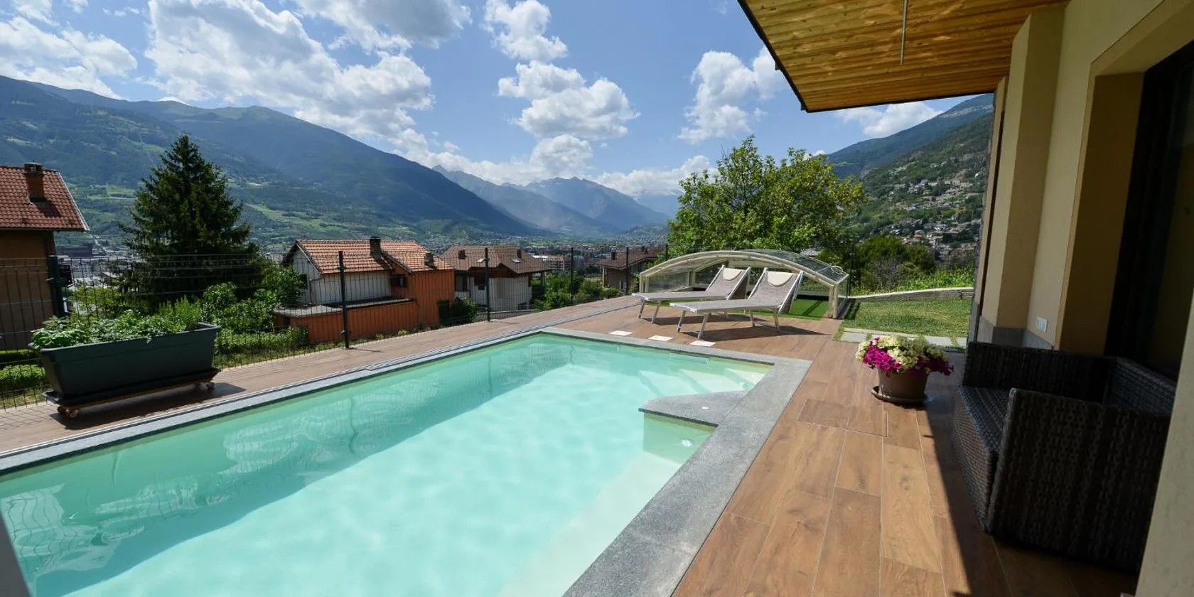 Set in Aosta, Villa Panoramica - 200Mq - SPA - Giardino Privato - 0039-34893-66818 offers accommodation with a pool with a view, a patio and pool views.