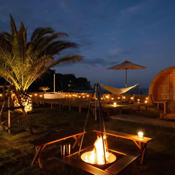 Το ケーブキャビン シービュー BBQ ピザ サウナ ホットタブ - Cave Cabin Chiba Seaview BBQ Pizza Sauna Hot-tub είναι ένα κατάλυμα με κήπο και βεράντα.