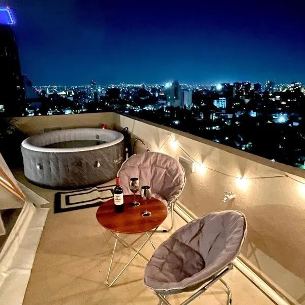 Penthouse Espectacular Vista Cd A.C. WiFi 300mbps se encuentra en el centro de Guadalajara y dispone de piscina de temporada al aire libre, un jardín, wifi gratis y parking privado gratis.