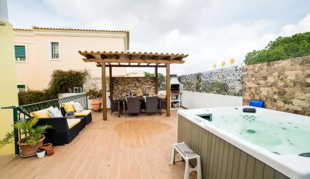 Villa R&M with Pool and Jacuzzi, que tiene piscina al aire libre, jardín y terraza, dispone de alojamiento en Quelfes con wifi gratis y vistas a la ciudad.