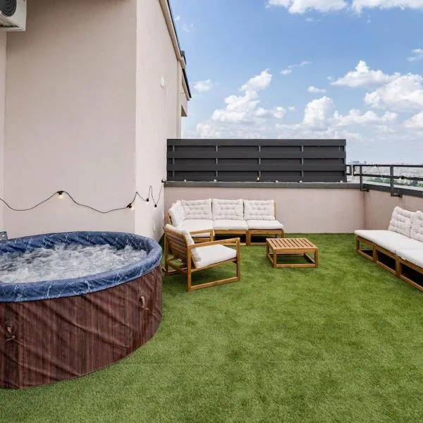 Το Amazing 2-Room Penthouse Cityview W13 έχει θέα στην πόλη και παρέχει κήπο και βεράντα. Το σημείο ενδιαφέροντος AFI Cotroceni είναι περίπου 3,7 χλμ μακριά.