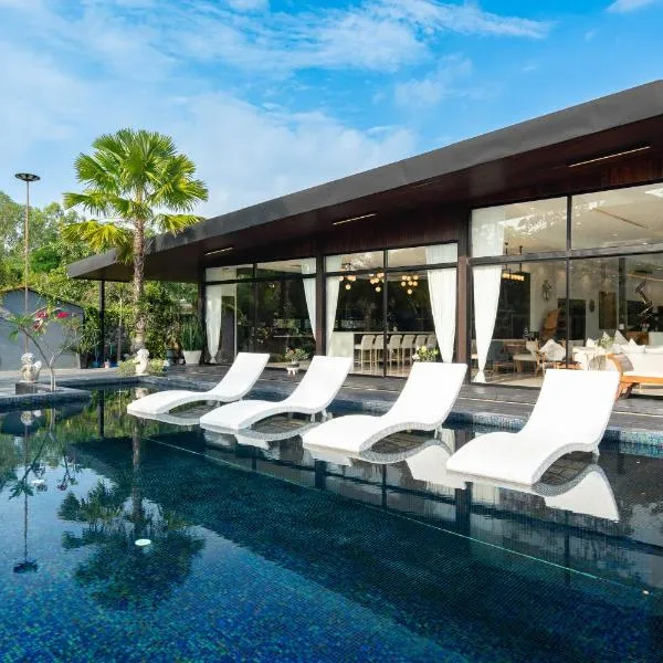 Το Charming Stylish Pool Villa 4BR 現代溫馨四臥 泳池獨棟別墅 είναι σε Ban Huai Yai και διαθέτει καταλύματα με δωρεάν WiFi. Επίσης, έχει πισίνα, κήπο και βεράντα, καθώς και θέα στην πισίνα.