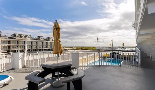 This beachfront property in Wildwood Crest boasts an outdoor swimming pool and a separate children’s pool. Select rooms have private balconies with ocean views.