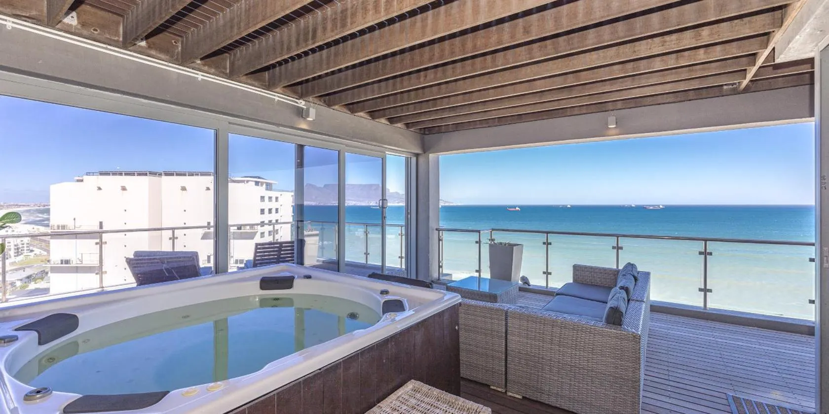 2 Bedroom Oceanfront Apartment with Sea Views se encuentra a 3 min a pie de Blouberg Beach y ofrece alojamiento en Ciudad del Cabo con acceso a una bañera de hidromasaje.