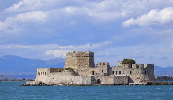 This imposing fortress was built by the Venetians in the 15th century to protect Nafplio from marauding pirates. It’s a bespoke building job, measured to fit the space on the tiny island of Bourtzi. While it’s impressive, it can’t hold a candle to nearby Palamidi – so make sure you visit Bourtzi first!