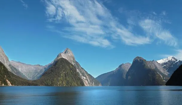 Carved out by glaciers during the ice age, this remote fjord was first discovered over 1,000 years ago by Maoris, who returned seasonally to collect the prized greenstone. The dramatic waterway runs 15 km inland from the Tasman Sea, bringing penguins, dolphins and seals. The sheer cliffs form 1,000-metre-tall peaks, often plunging waterfalls back down into the dark waters of the Sound.