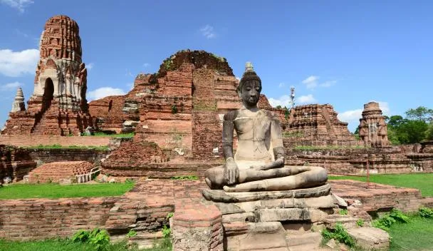 Mahathat Temple is home to one of the most iconic scenes in Ayutthaya. Among the temple complex, you’ll find a medieval stone Buddha’s head almost entirely engulfed by tree roots. It’s a much-photographed image that evokes lost civilisations, the passage of time and the primacy of nature over humanity.