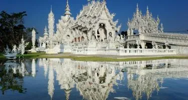 Bright white and covered in thousands of tiny mirrors, Wat Rong Khun is a glittering tribute to Buddha’s purity, designed by one of Thailand’s most popular artists. Whether you find it deliciously kitsch or exuding a holy beauty, it’s certainly unique. Even the koi are white, and you can’t miss the a trip to the toilet, which may just be the most elaborate in the world.