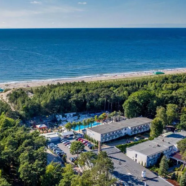 Złota Palma Kopań -domki całoroczne nad morzem está en Kopań, en la región de Pomerania Occidental, a 11 min a pie de Playa de Bursztynowa Przystań.
