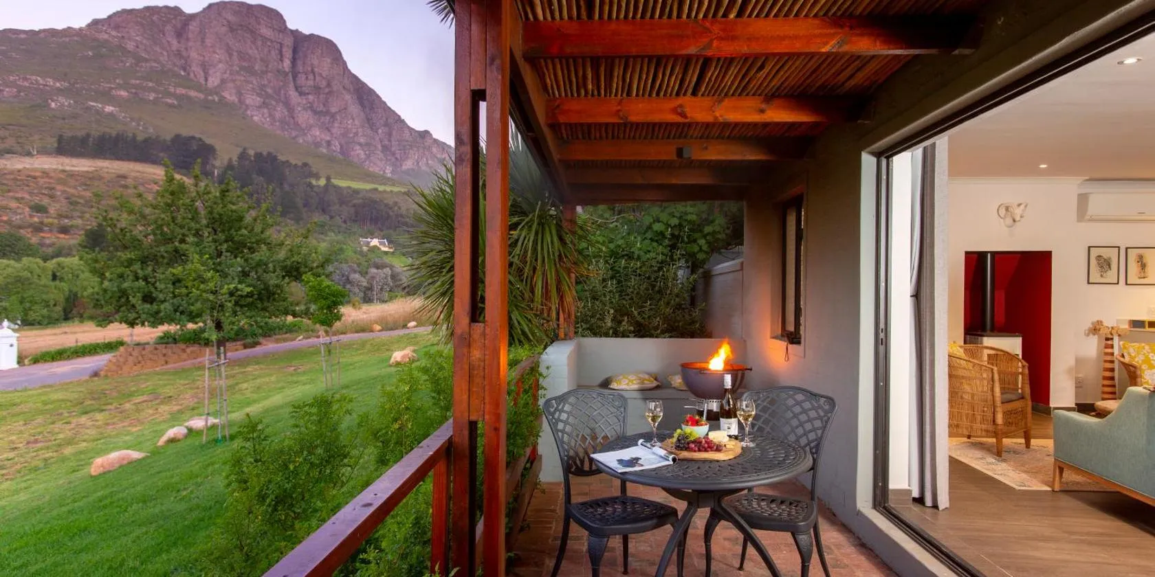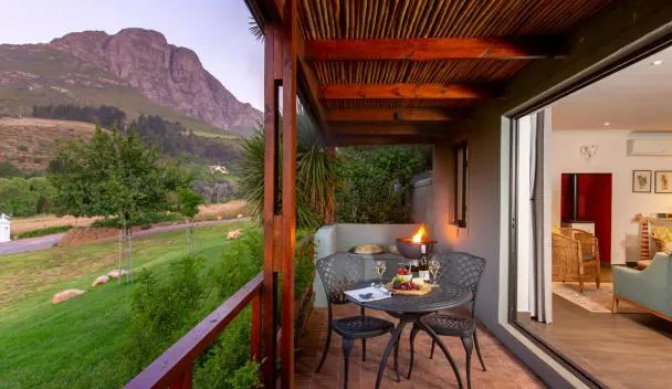 Banhoek Lodge is situated along the scenic Helshoogte Pass, which offers an array of wine farms. The lodge boasts views of the vineyards and mountains.