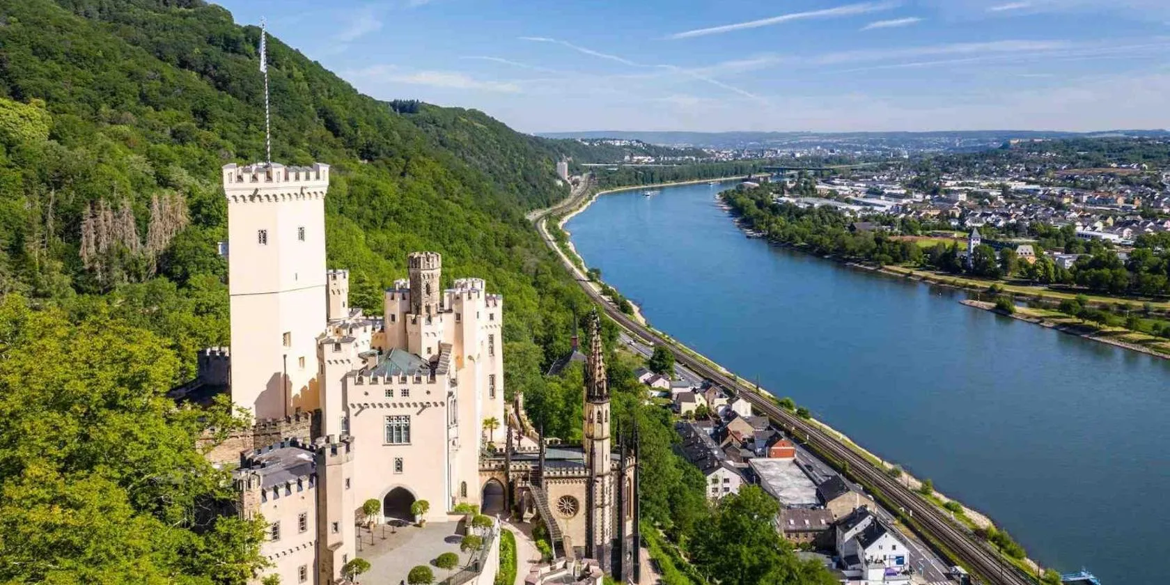 Se encuentra a orillas del río Rin, a 5 minutos en coche del centro de Coblenza.