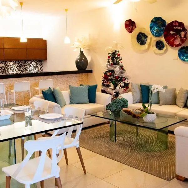 Το Oasis del Mar- Departamento Palma διαθέτει δωρεάν WiFi, κλιματισμό, εξωτερική πισίνα και κήπο. Είναι σε Progreso και απέχει 2,3 χλμ από Παραλία Progreso και 30 χλμ από Gran Museo del Mundo Maya.