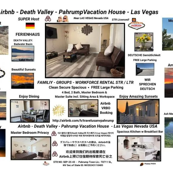 Το Death Valley PrairieFire 3bd 2ba Home w Kitchen βρίσκεται σε Pahrump. Οι επισκέπτες έχουν στη διάθεσή τους δωρεάν WiFi και ιδιωτικό χώρο στάθμευσης στον χώρο του καταλύματος.