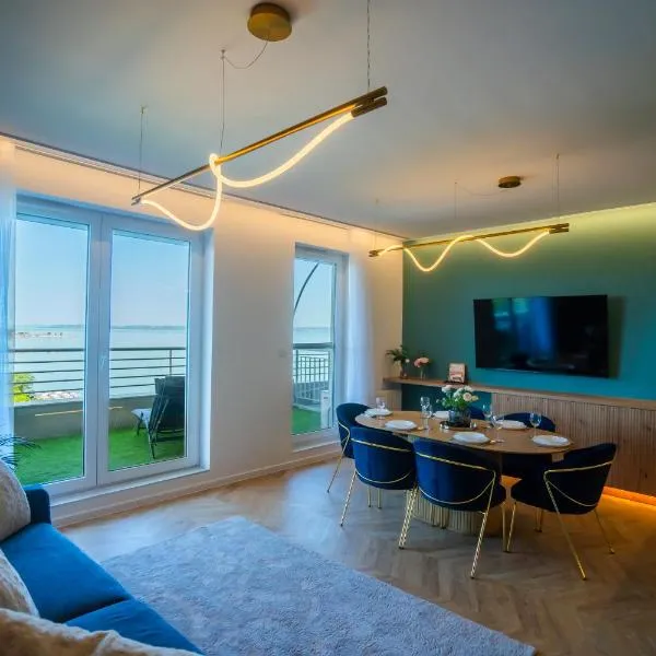 Club218 Holiday Apartman Siófok está en Siófok, a pocos pasos de Playa de Aranypart, Siofok y a 1,9 km de Bebo Aquapark, y ofrece alojamiento con wifi gratis, jardín con terraza, vistas al lago y...