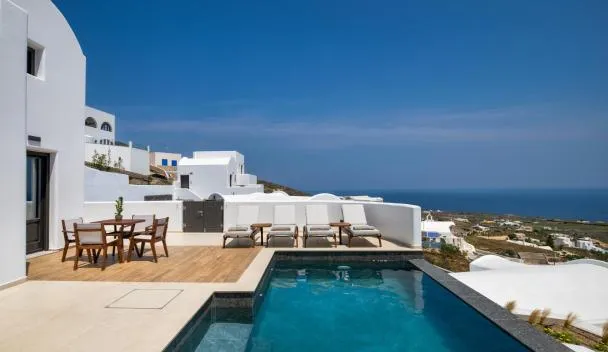 Το Sunset View Villa Santorini - with Outdoor Jacuzzi έχει θέα στη θάλασσα και παρέχει βεράντα και μπαλκόνι. Το σημείο ενδιαφέροντος Αρχαιολογικό Μουσείο Θήρας είναι περίπου 600μ μακριά.