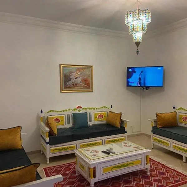 Το Maison bleue proche de la mer βρίσκεται σε Dar Salah Bey και διαθέτει δωρεάν WiFi και θέα στον κήπο. Έχει επίσης κήπο, κοινόχρηστο χώρο lounge και βεράντα.